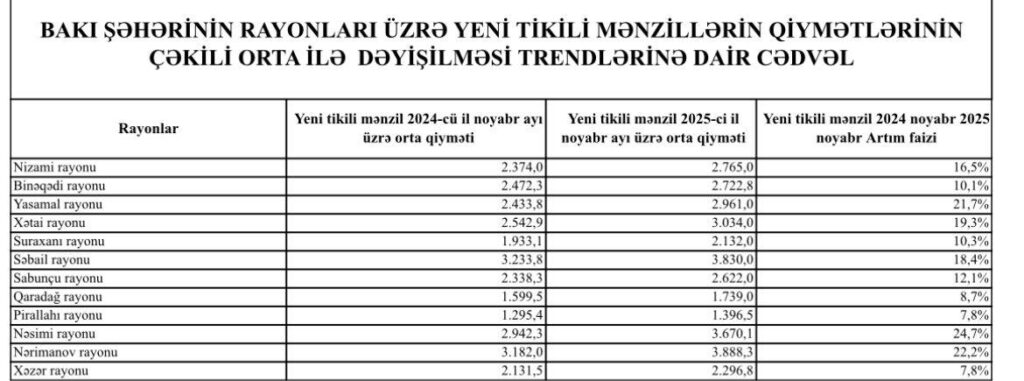 Bakıda mənzillərin qiyməti sürətlə bahalaşır – Bu ərazilərdə